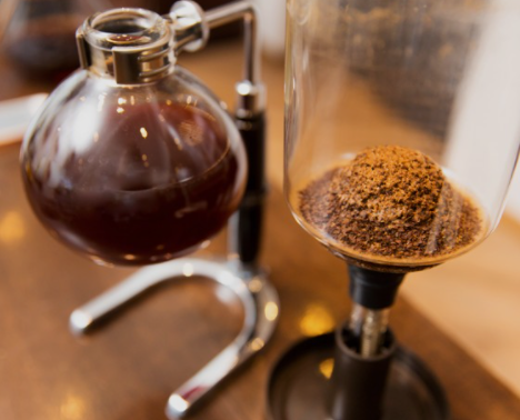 금속이나 유리로 된 두 개의 둥근 용기를 사용합니다. 먼저 아래의 용기에 물을 넣고 위의 용기에는 분쇄된 커피를 넣습니다. 아래의 용기에 열을 가하면 증기의 압력에 의해 아래의 물이 위로 올라갑니다. 물이 더 올라갈 수 없을 때 아래에 있던 가열 기구를 치웁니다. 그러면 온도가 떨어짐에 따라 수증기가 액화되고, 따라서 아래의 용기가 진공 상태로 되면서 위의 커피 액이 필터를 통해서 다시 아래로 내려옵니다.