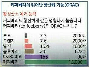 이러한 커피체프의 항산화수치는 15,000으로서, 불루베리의 625배, 아시아베리의 90배나 되는 엄청난 기능을 갖고 있다고 하니 정말 한번 꼭 마셔보고 싶은 커피차가 아닐까요