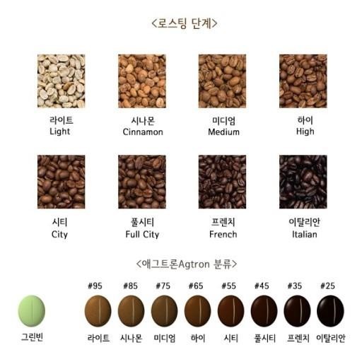 으로 분류된다. 라이트 로스팅부터 이탈리안 로스팅 순서로 이어지는데, 신맛에서 쓴맛으로 나타난다.