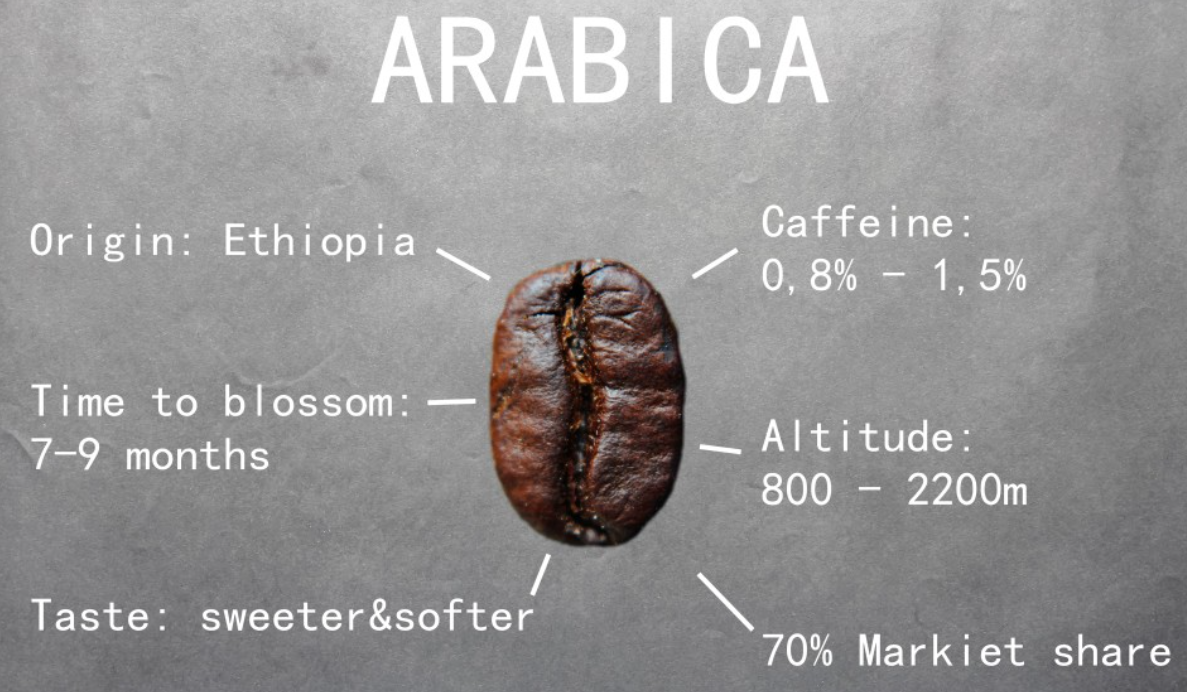 - 고지대에서 자라기 때문에 로부스타에 비해 조직이 단단하고 밀도가 높아 신맛과 단맛이 좋고 풍부한 향미가 특징