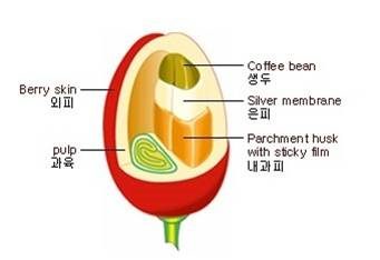 커피콩(생두, green beans)은 커피나무의 붉은 열매에서 과피와 과육을 제거하면 나오는 씨앗을 건조시킨 것으로 커피의 맛과 향기의 원천